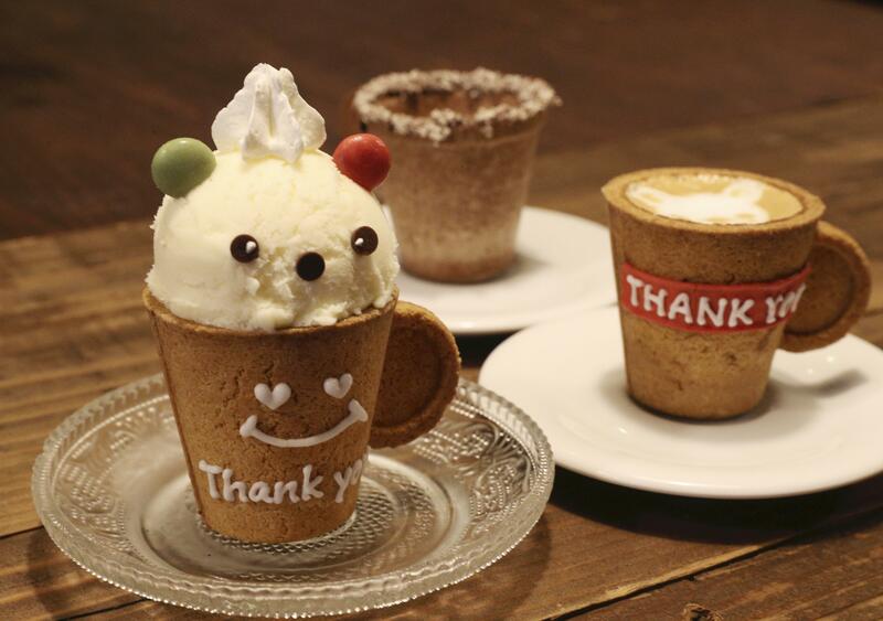 R.J. Cafe in Osaka serves edible cups in two types: one made of cookie dough and the other gluten-free.