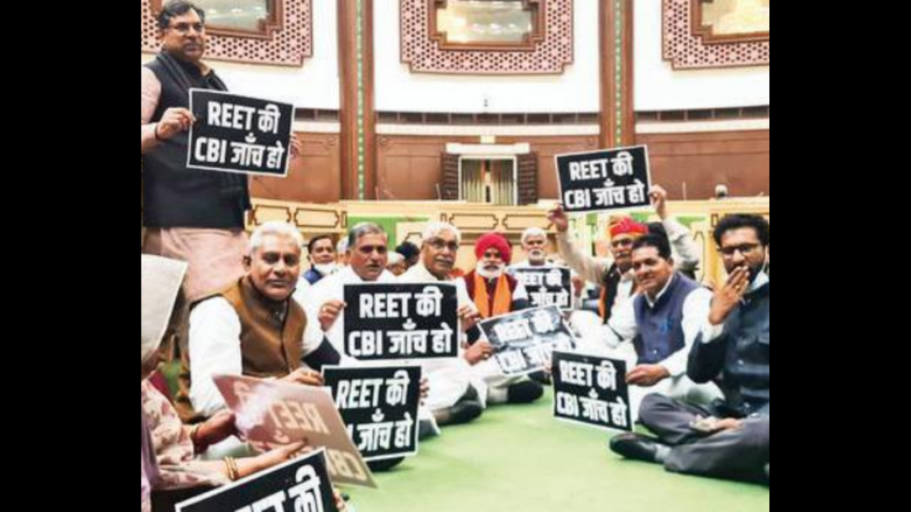 As soon as the Question Hour began, Opposition MLAs began raising their demand for a CBI probe into REET paper leak case and rushed to the well with placards.