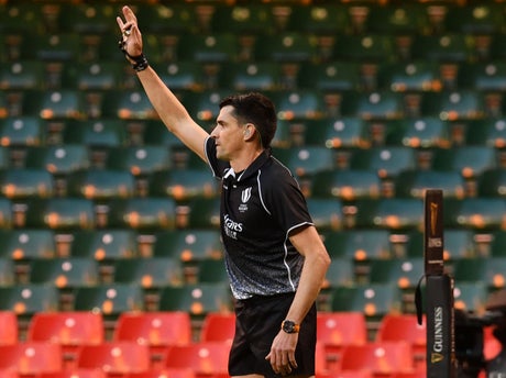 For Josh Adams’ opener, Gauzere told England captain Owen Farrell to speak to his team over their discipline and then quickly restarted play, allowing Dan Biggar to hoist the scoring crossfield kick.