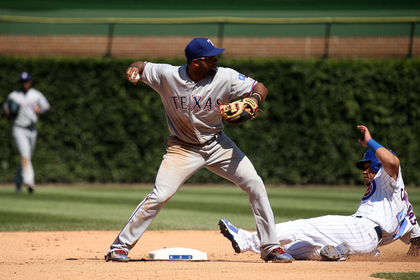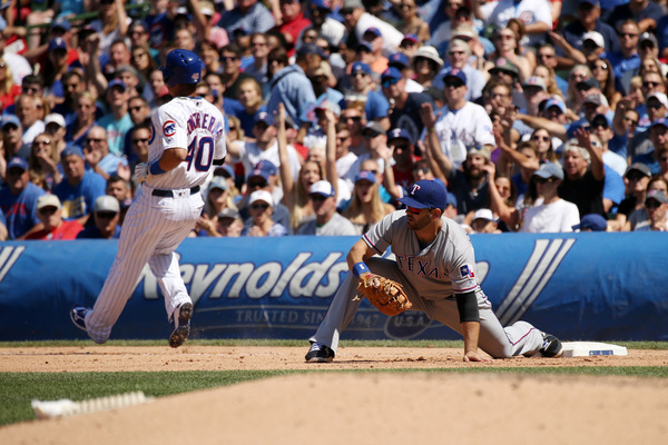 And Kris Bryant ranged deep behind third base to make a back-handed stop of an Adrian Beltre grounder with first baseman Anthony Rizzo stretching far to catch the one-hop throw for the final out of the eighth with two runners on base.
