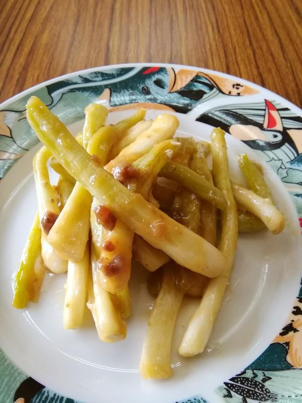 "Would you like to try one raw?" asked Gima. I bit into the flesh and a sweet flavor enveloped my taste buds, before the refreshing spiciness kicked in. Gima introduced a few recipes to me that feature island shallots, including tempura, chanpuru (an Okinawan stir-fried dish that contains tofu, meat and other ingredients) and a stir-fry using salty-sweet aburamiso, an Okinawan specialty of miso stir-fried with pork fat.
