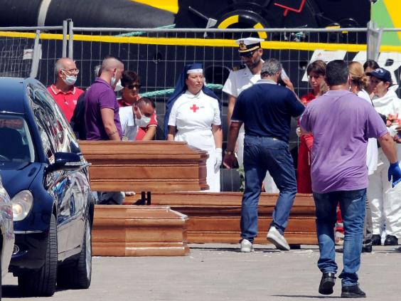 On 20 July she boarded a boat drifting off the coast of Libya to find the bodies of 22 refugees on board, mostly women crammed between the wooden floor and rubber hull.