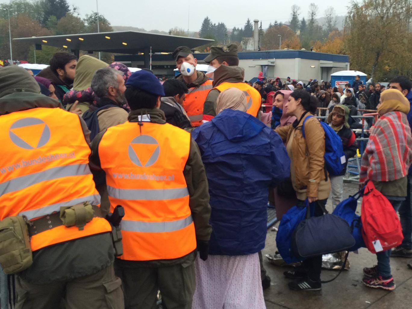 Less than two hundred metres from the chaos of the no man’s land between Austria and Slovenia, the Austrian army is trying to impose order.