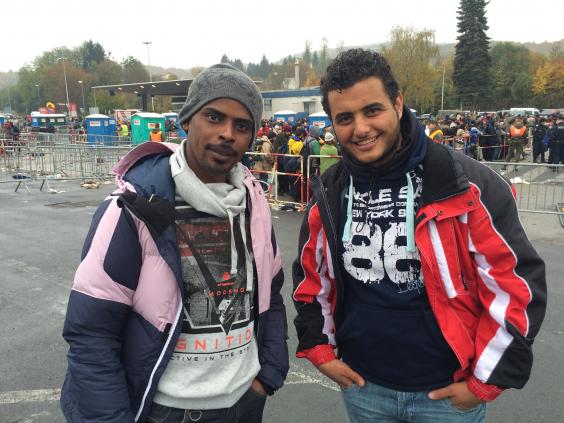 As Mr Al Sadoun is talking, an Austrian police approaches and tried to move him into the line of refugees, only stopping when he realised that he already has Austrian citizenship.