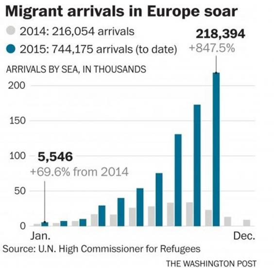 The U.N. refugee agency said Monday that a record 218,394 people crossed the Mediterranean to reach European shores in October — about as many as the total from all of last year. As the numbers rise, officials in countries across central and southeastern Europe are eyeing one another nervously, fearing that a sudden closure of any one border could unleash a domino effect across the region that would leave tens of thousands of people stranded and angry, far from their intended destinations in the continent’s north.