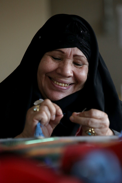 She knows her needles. As a girl in Iraq, her mother taught her how to sew. Classes in a Baghdad classroom boosted her skills.
