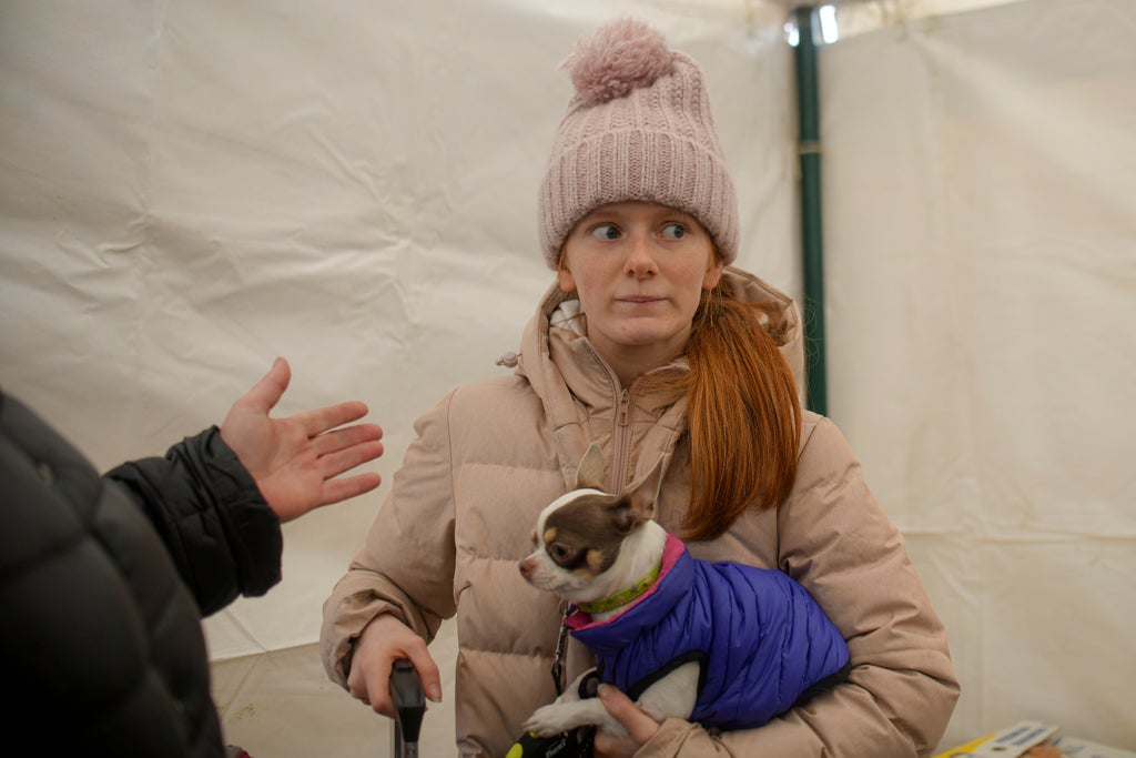 Her daughter, 18-year-old Margo, cradled the family toy Chihuahua, dressed lovingly in a purple puffer, in the safety of a refugee camp in the border city of Siret, Romania.