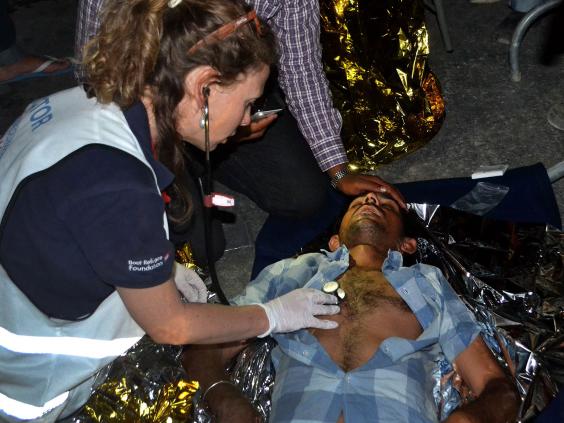 At least 70 people were injured according to an account by Save the Children, with photos showing bleeding migrants being treated by paramedics as others were evacuated from the compound.