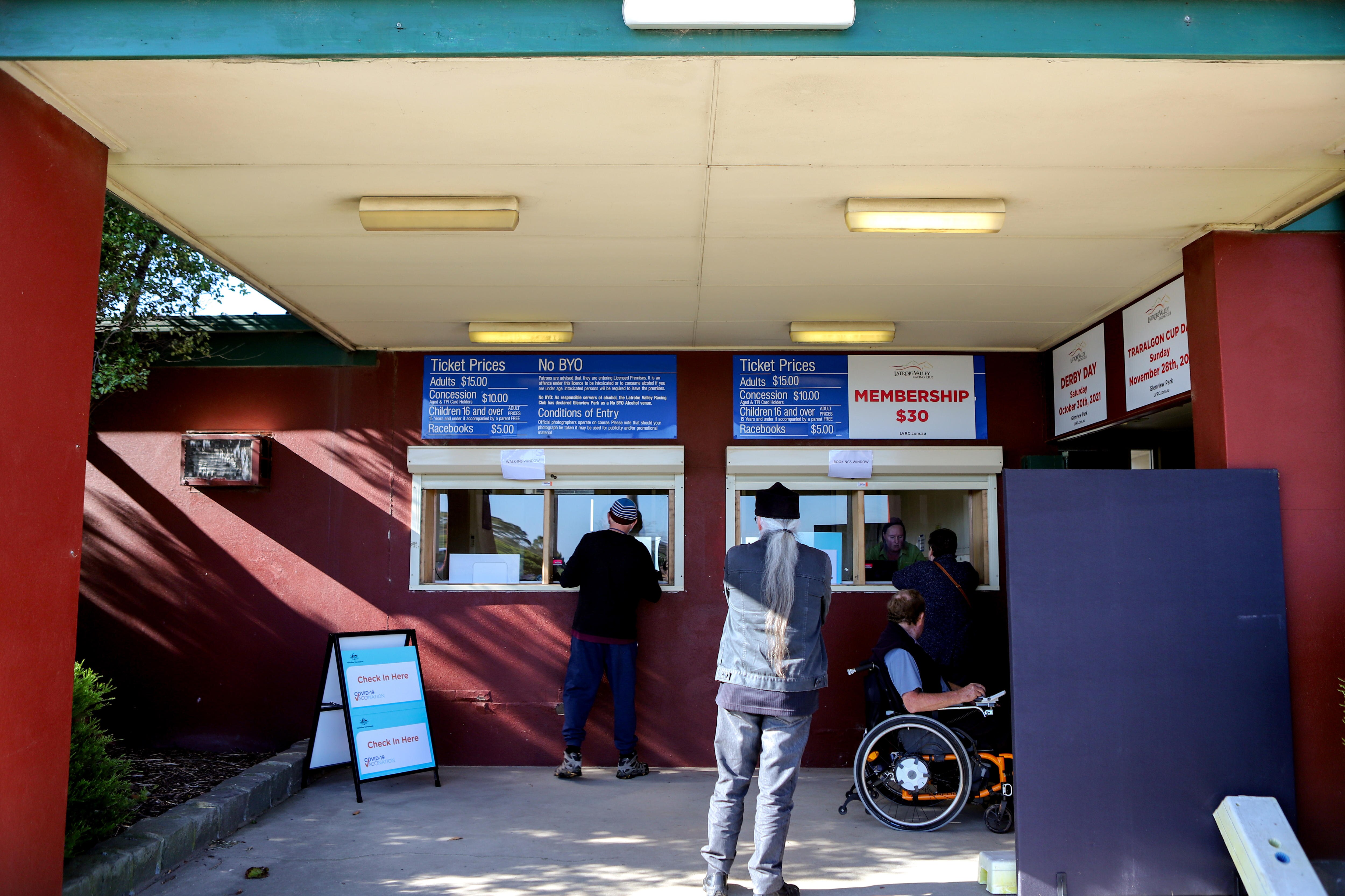 So far around 170 people each day — a mixture of bookings and walk-ins like Mr Dunne — have passed the 'No BYO' signs and posters for local racing meets to receive a vaccine inside a large, warm pop-up white marquee.