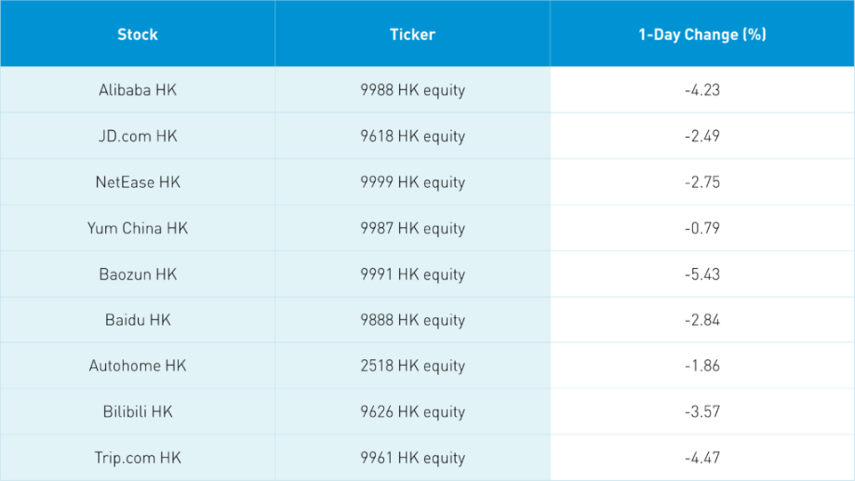 Asian equities followed the US’ Friday underperformance overnight. Hong Kong-listed internet stocks were hit today as the Ministry of Industrial and Information Technology (MIIT) reiterated that internet companies cannot block competitors on their platforms. This should not have been news as we knew this already, but, combined with a Financial Times article stating that Ant Group would need to separate their loan business from their mobile payment business in a new entity, took the wind out of the space. It is worth noting that the FT article only quoted “unnamed sources”. I’m surprised investors haven’t become more skeptical of such articles. Last week, a false report that Didi would be taken over by the government was disseminated in the US.