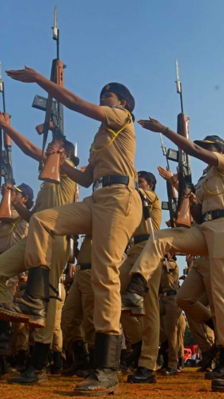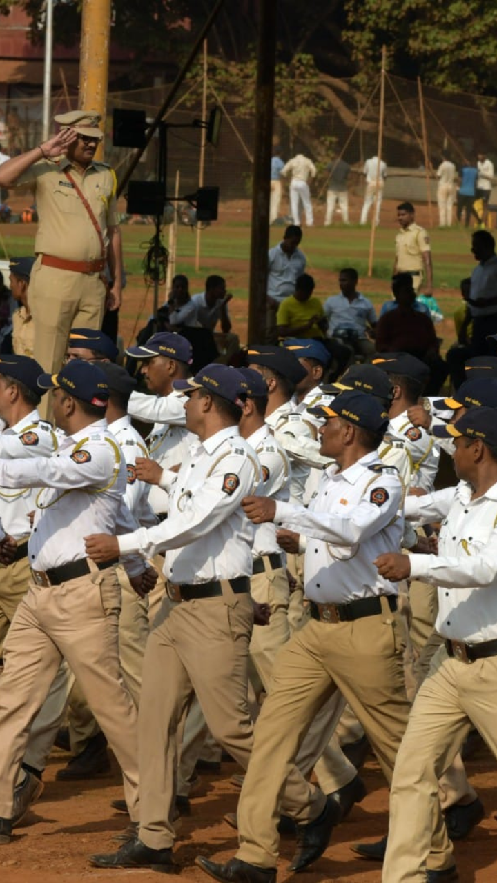 With Covid curbs lifted, an all-forces rehearsal under way for the May 1 parade at Shivaji Park on Tuesday.