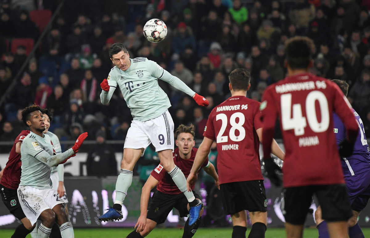 Soccer Football - Bundesliga - Hannover 96 v Bayern Munich - HDI-Arena, Hanover, Germany - December 15, 2018 Bayern Munich's Robert Lewandowski scores their fourth goal REUTERS/Fabian Bimmer DFL regulations prohibit any use of photographs as image sequences and/or quasi-video