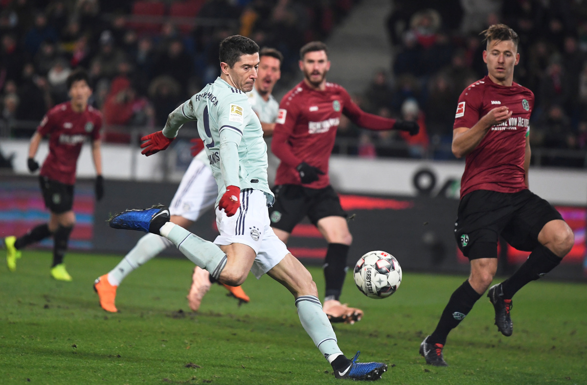 Soccer Football - Bundesliga - Hannover 96 v Bayern Munich - HDI-Arena, Hanover, Germany - December 15, 2018 Bayern Munich's Robert Lewandowski shoots at goal REUTERS/Fabian Bimmer DFL regulations prohibit any use of photographs as image sequences and/or quasi-video