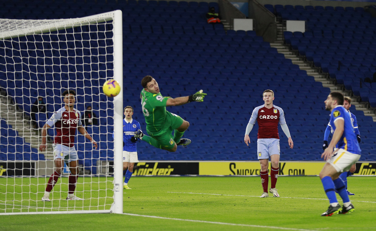 Aston Villa moved up to eighth place after a 0-0 draw at Brighton and Hove Albion.