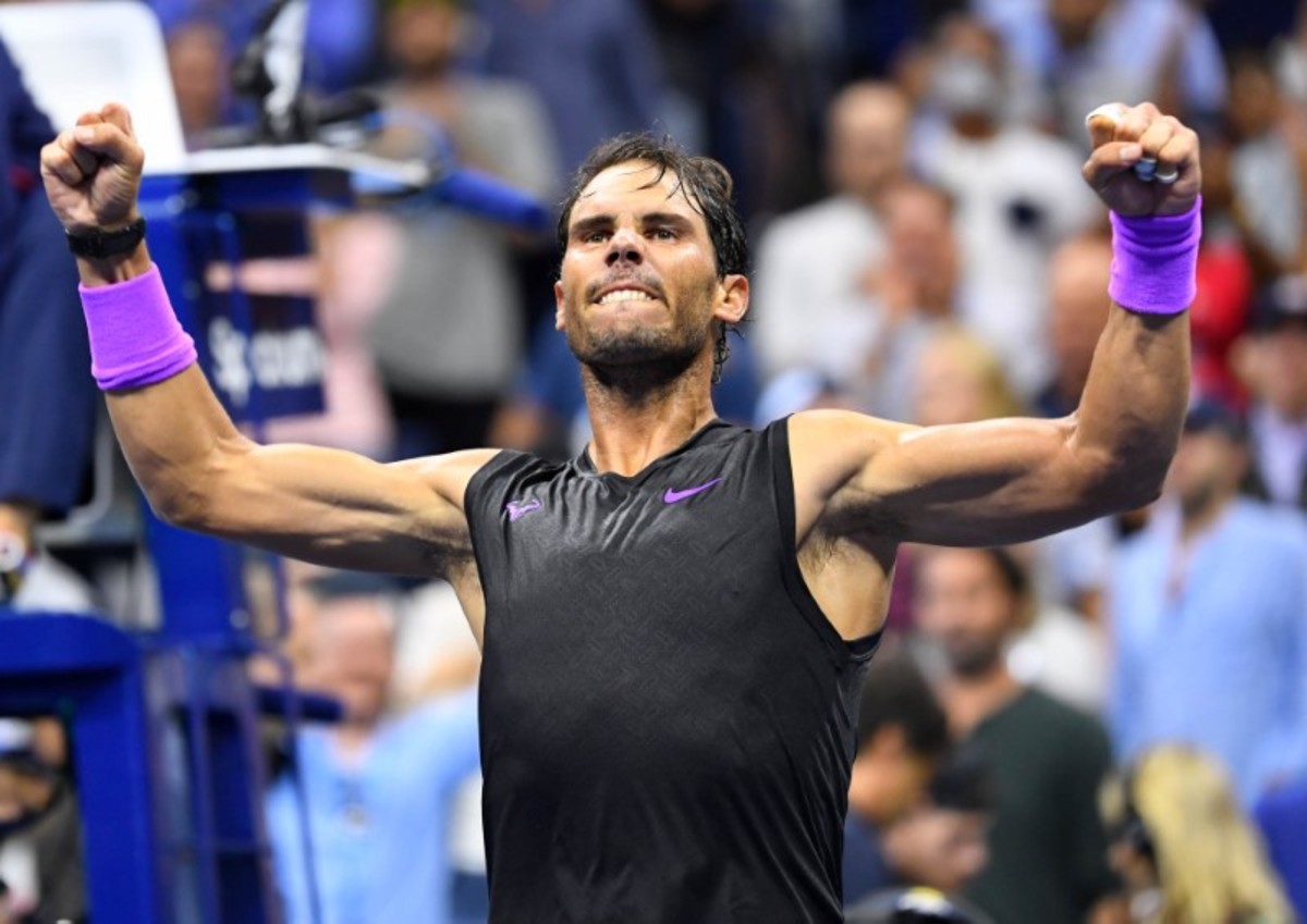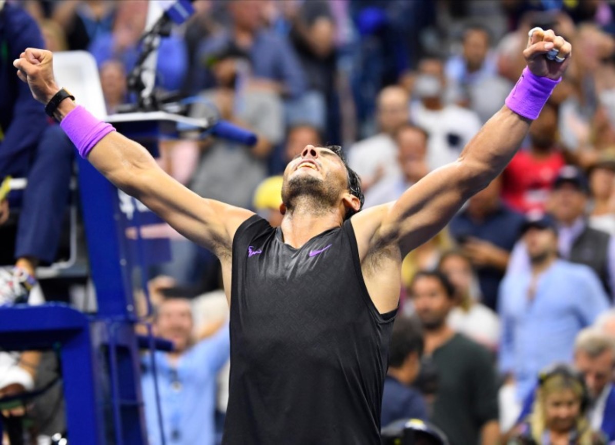 Sept 2, 2019; Flushing, NY, USA; Rafael Nadal of Spain celebrates match point against Marin Cilic of Croatia in the fourth round on day eight of the 2019 U.S. Open tennis tournament at USTA Billie Jean King National Tennis Center. Mandatory Credit: Robert Deutsch-USA TODAY SportsSept 2, 2019; Flushing, NY, USA;
