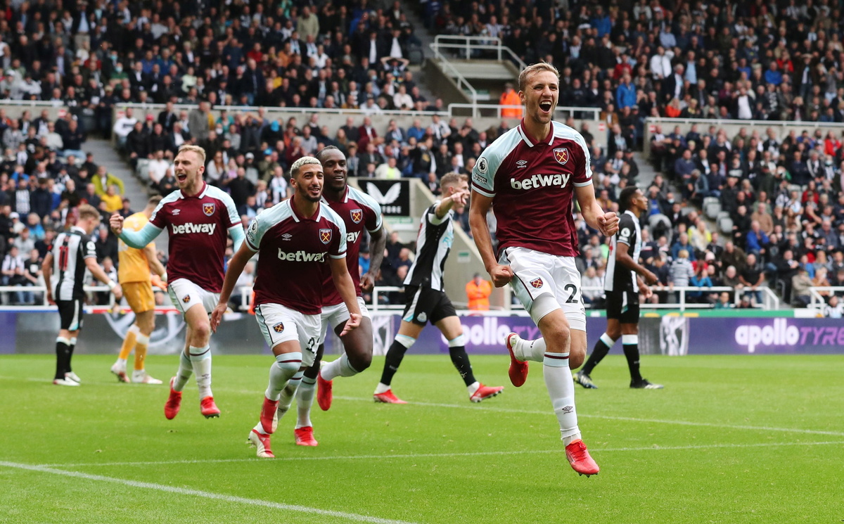 West Ham United forward Michail Antonio missed a penalty before scoring with a thundering shot as the Londoners came from behind to outclass Newcastle United 4-2 in a breathless Premier League season opener at St James' Park on Sunday.