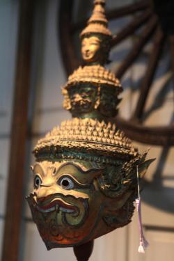 The northern section of the hall, which once served as the duty room for attendants, houses a collection of khon masks and wooden sculptures.
