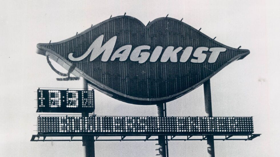 Many places I’m not familiar with, but I still find endearing history lessons in images: Pickle Barrel Restaurant on North Wells Street, Scottsdale Bowling Lanes on Cicero Avenue, the Archer Express bus zipping past Sears downtown in 1969 or the Edens Theater in Northbrook. One that I’m very familiar with is the red lips of the Magikist sign — I lived by one off of the Dan Ryan Expressway.
