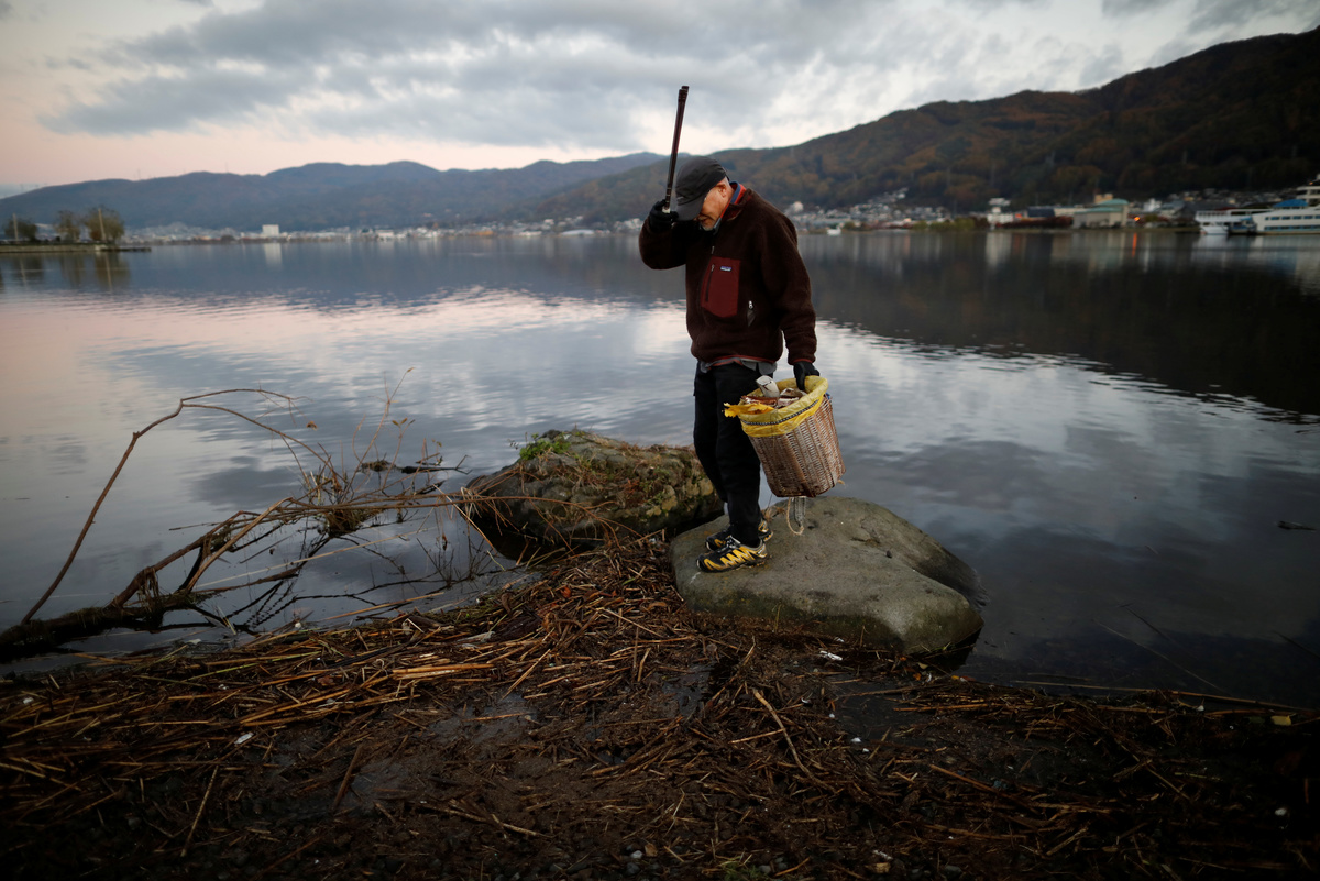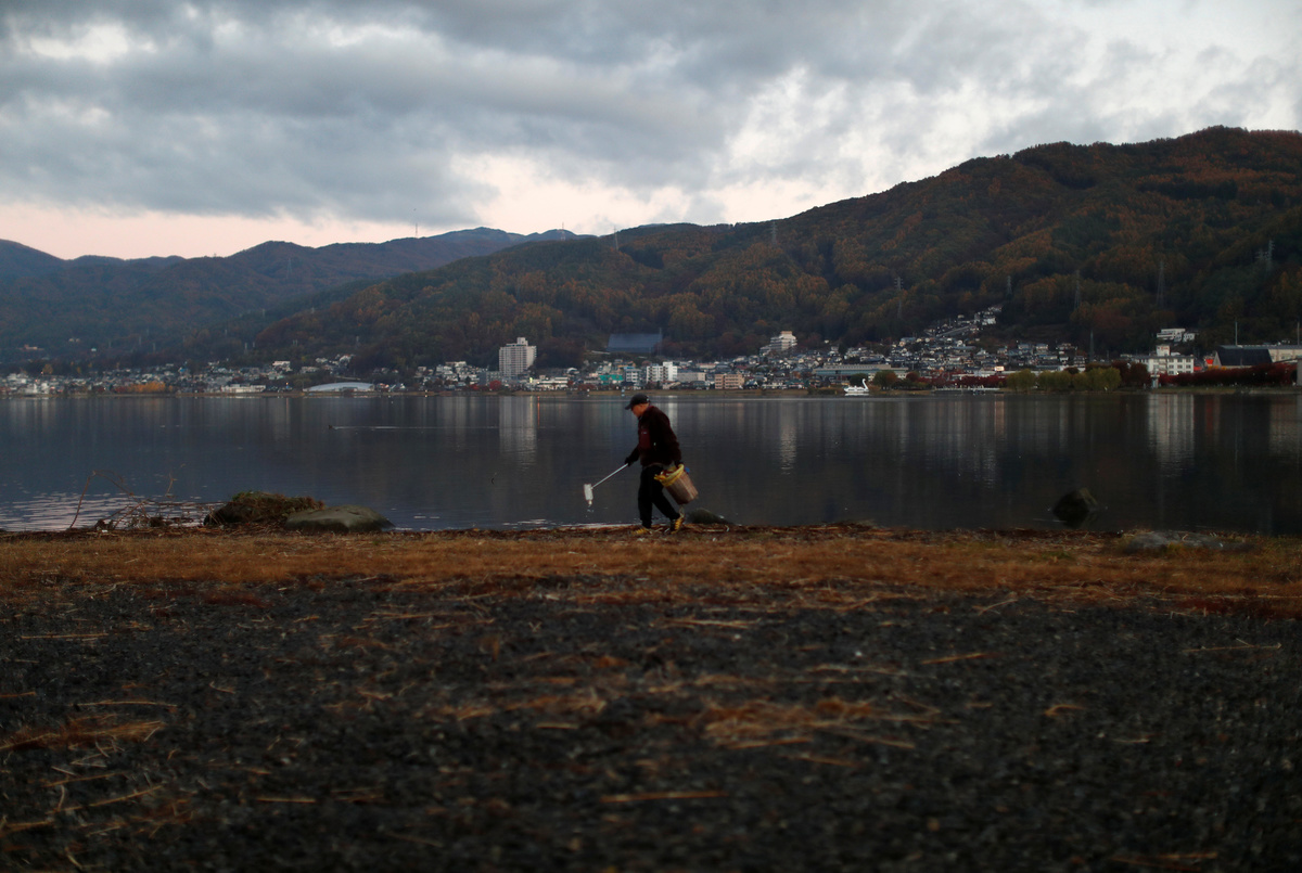 It's a little past 10 a.m. by the time Atsushi Momose finishes his coffee in his garden. He stubs out a hand-rolled cigarette in an ashtray and grabs a lifejacket off the ground. It's Sunday, but he still has to complete his daily routine of cleaning the lake he's loved since he was a child.