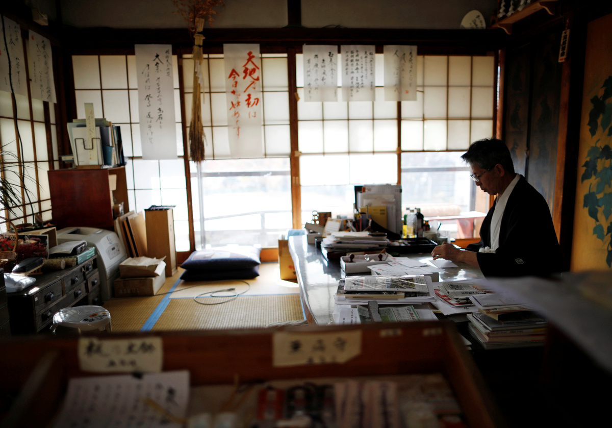 Rusted fishing boats are still anchored near the pier. Kanji Fujimori, 75, who recently retired as the head of the local fisheries union, walks up the stairs of a local community center in his socks and sits at a large desk in the building's empty library.