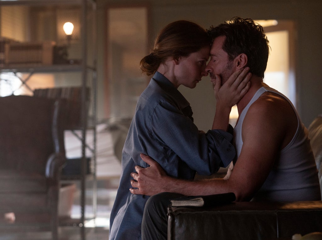All this worldbuilding, shot with reverence by cinematographer Paul Cameron, serves a story that’s ultimately nothing but pastiche. Jackman is the Humphrey Bogart-type, trapped in a cycle of hard-boiled monologues (“it’s us that haunts the past”) that come off as surlier than his Wolverine. He becomes consumed by an obsession over the mysterious woman that strolls into his practice one day. With her Veronica Lake hair and hooded cloak, Rebecca Ferguson’s Mae is a futuristic cousin to Kim Basinger in LA Confidential. Then we learn she’s a chanteuse and, perfectly on cue, she steps out in a va va voom Jessica Rabbit dress. The pair barely fall in love before she disappears without a trace.