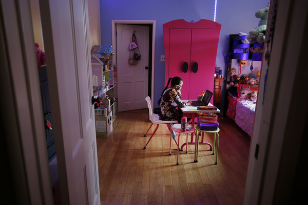 There haven't been any tantrums, but she gets distracted, her parents said. They offer incentives to get her to her desk, such as an afternoon at the swimming pool or a treat.