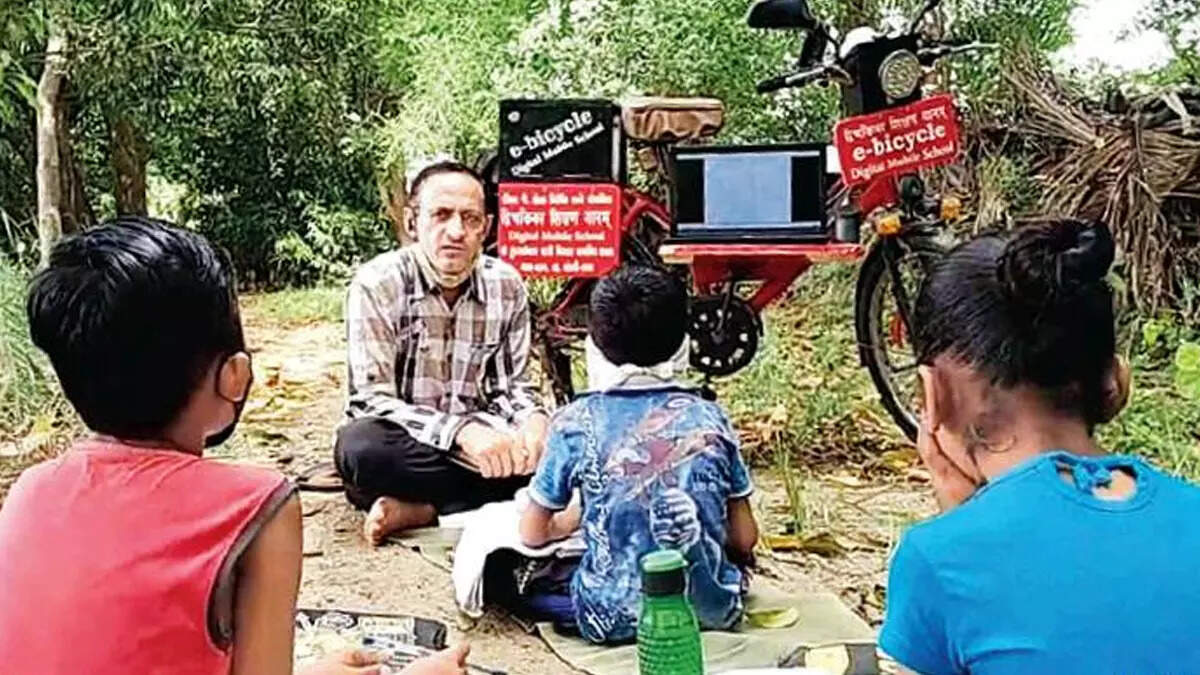 At a time when online education is a challenge especially in remote areas, a primary school teacher in Kutch came up with an innovative idea for taking schools to the doorsteps of students by developing an ‘e-bicycle mobile school’.