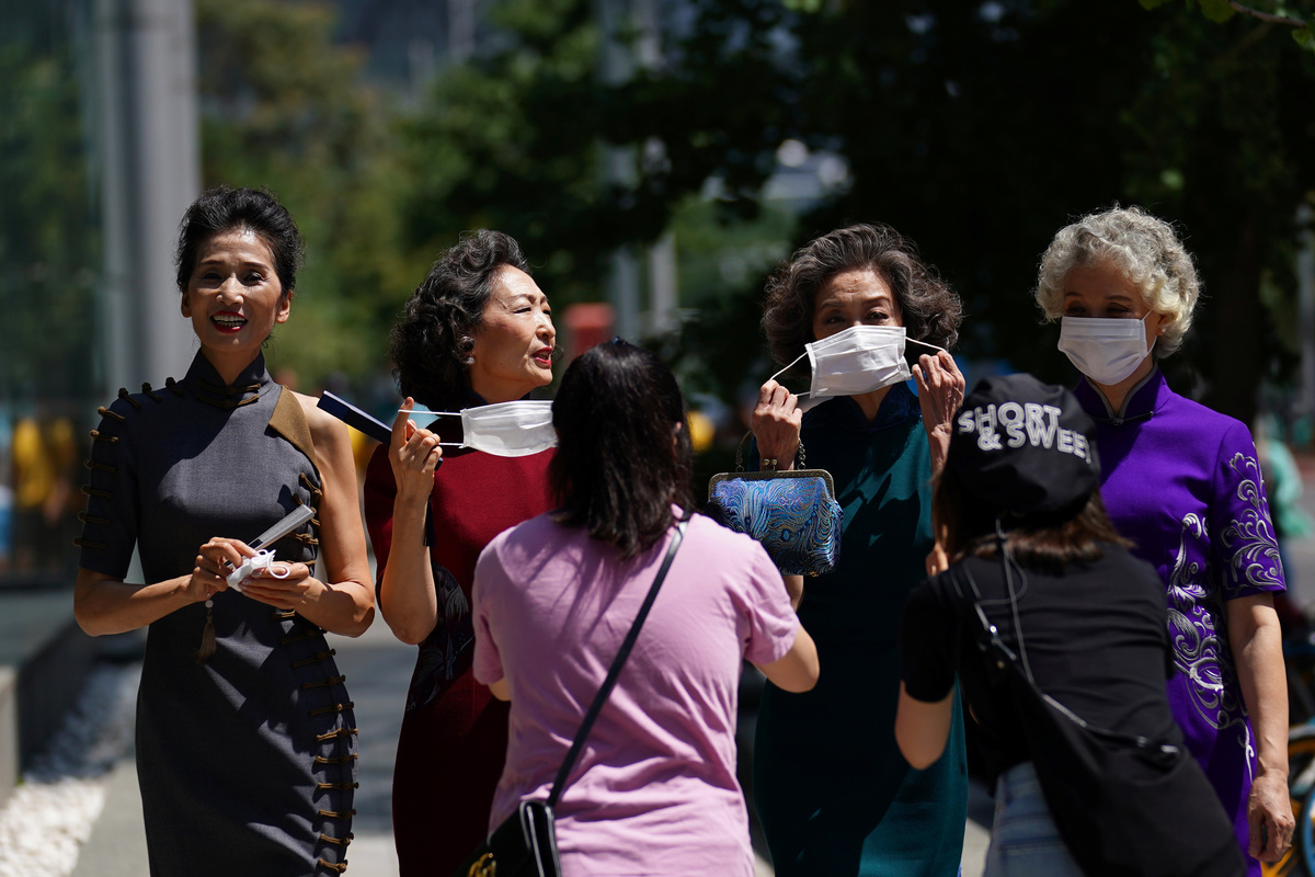 Four famous amateur model grandmothers took off their masks during a saunter down the streets of Beijing on Thursday to demonstrate life returning to normal as the COVID-19 pandemic eases.