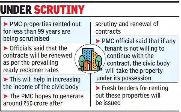 Civic officials stated that the contracts rented for less than 99 years were being scrutinised. “We have started the process of sending notices to the occupants of civic properties. These people have equal responsibility to renew their contracts but have not done so. The reasons will be checked, and action initiated accordingly,” Rajendra Muthe, head of the PMC’s estate management department, told TOI.