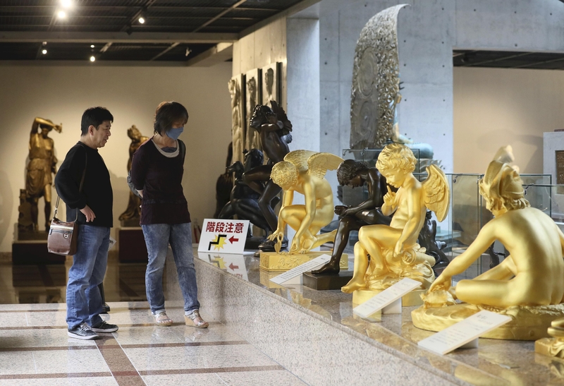 At the Japon Louvre Sculpture Museum in Tsu, stairway railings and other items often touched by visitors are frequently disinfected by staff. Visitors are urged to wear a mask and use hand sanitizers, and non-Mie Prefecture residents are asked to refrain from coming. The museum, which displays sculptures based on works of art from the Louvre in Paris, plans to halt sales of advance tickets to those outside Mie Prefecture.