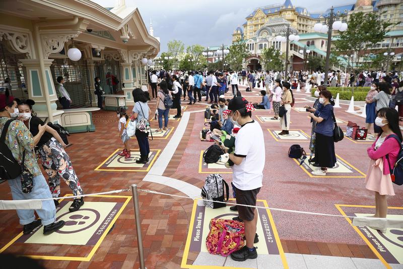 "While I'm glad [the park] has reopened, I'm also worried about getting infected, so I would like to enjoy everything while frequently disinfecting [my hands]," said a 24-year-old woman from Saitama Prefecture.