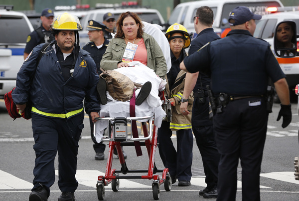 As injured passengers continued to leave the train, others gathered in a parking lot near the station and waited for medical attention, according to video from the scene posted on the CBS News website.
