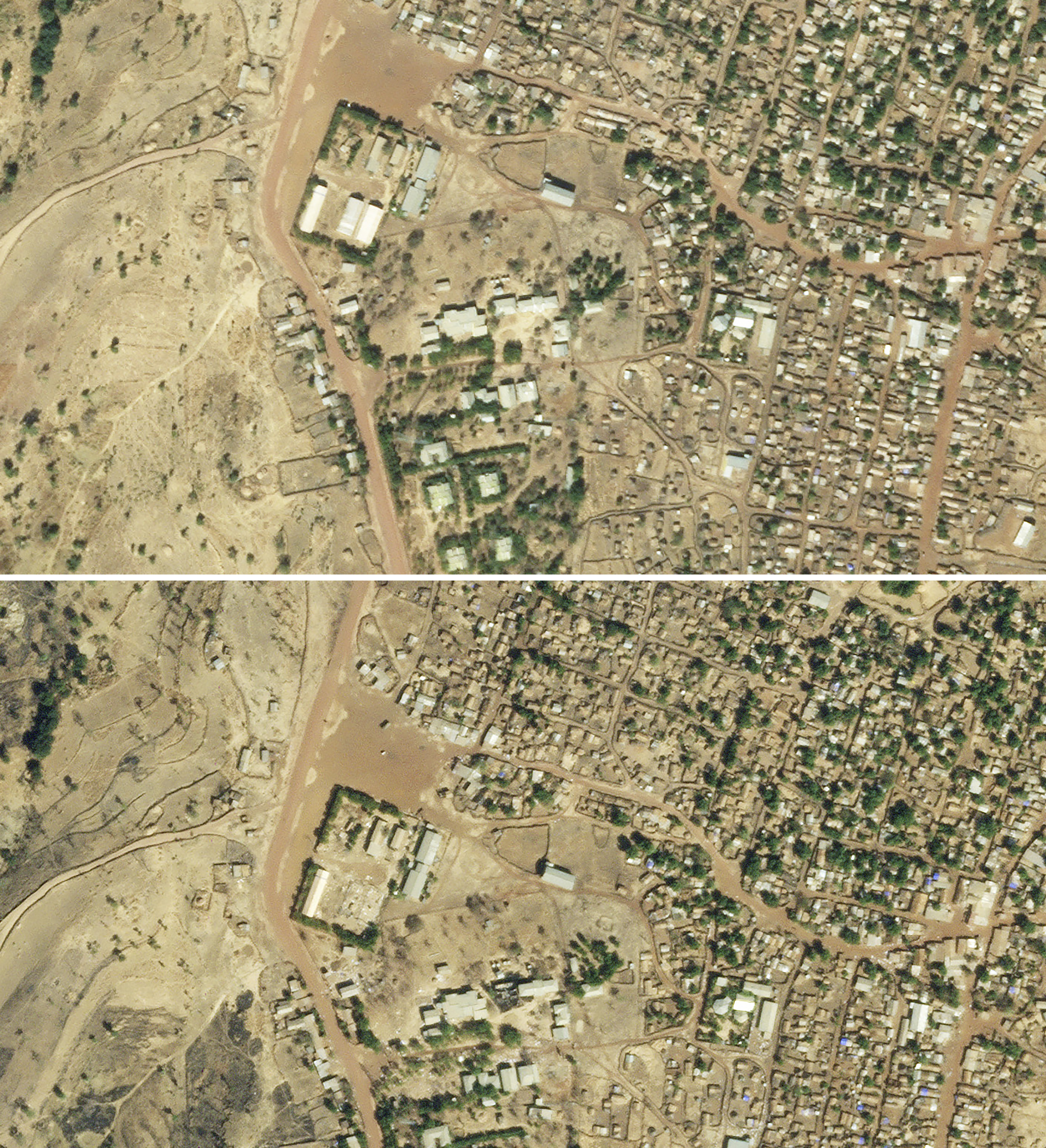 The new report says the satellite images show “smoldering ruins, blackening of structures and collapsed roofs.” The structures, it said, “match the profile of mud-brick dwellings constructed by the refugees themselves. The attackers likely split into multiple groups going door to door to set fires inside buildings," consistent with previous attacks on the Hitsats camp, which also is inaccessible.