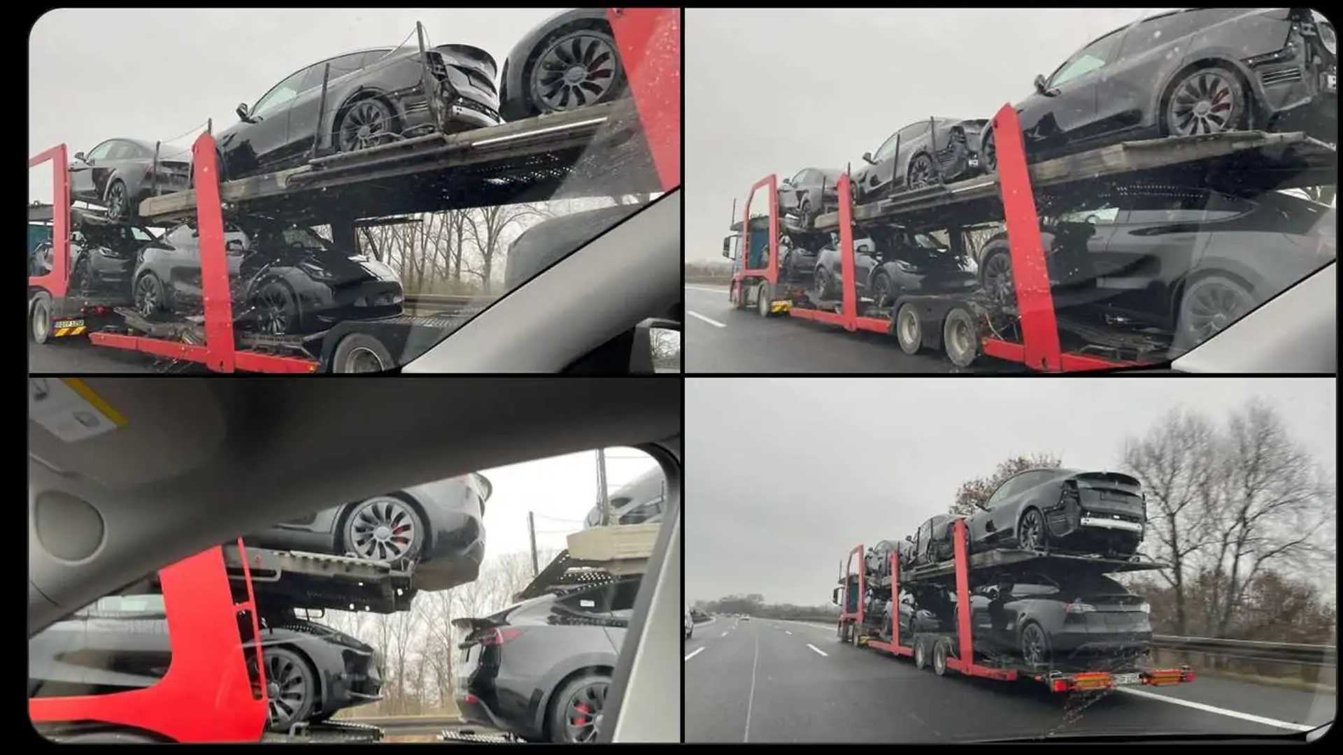 Several images of a vehicle carrier with Tesla Model Ys (a total of six cars) were posted on Twitter by Tesla_Adri, who links to Steve&Julian Igembb Facebook.