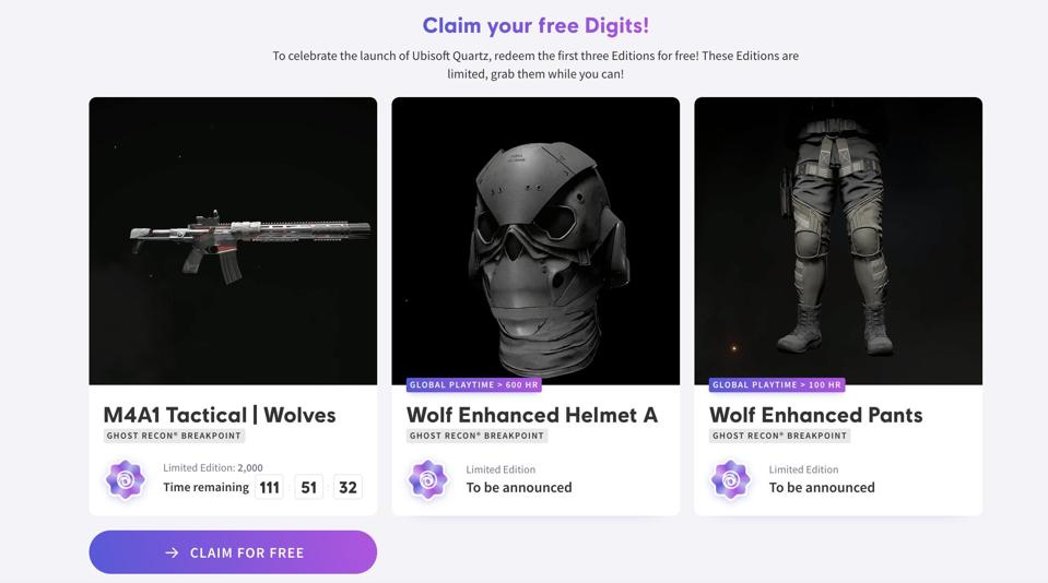 So far, no further announcements about NFTs in future Ubisoft games have followed this ongoing, experimental run in Ghost Recon, where limited quantity NFTs are being issued based on playtime. A pair of pants can be claimed by players who have put 100 hours into Breakpoint. 250 copies of a digital helmet can be claimed by those who have put 600 hours in. No real-world value has manifested from these yet, but it’s still in the experimental stage. An experiment that it seems many both inside and outside Ubisoft hope fails. I’ve asked Ubisoft for comment on the pushback, and will update if I hear back.