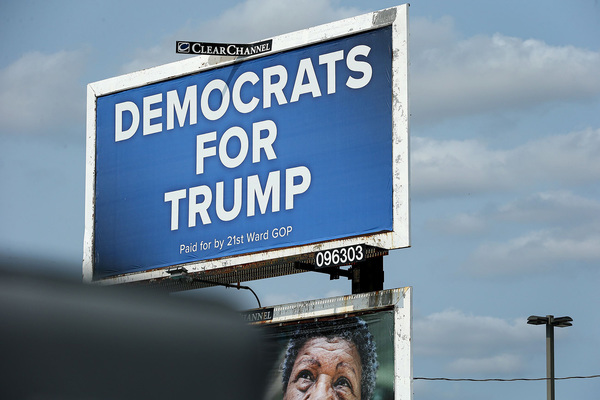 PHILADELPHIA � Inquirer reporters spotted a pair of complications when we spied the brief lifespan of a "Democrats for Trump" billboard on Ridge Avenue, at the southern end of the Roxborough area in Philadelphia last week.