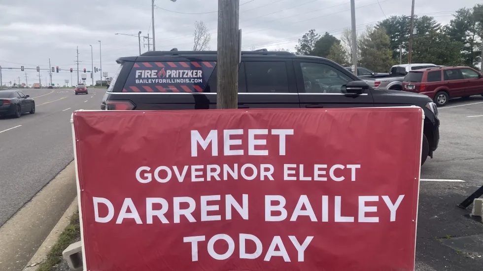 On his personal voice mail, Bailey identifies himself as the “next governor of Illinois.” And signs at his campaign stops invite voters to meet “Governor Elect Darren Bailey” — a title at best two elections away.