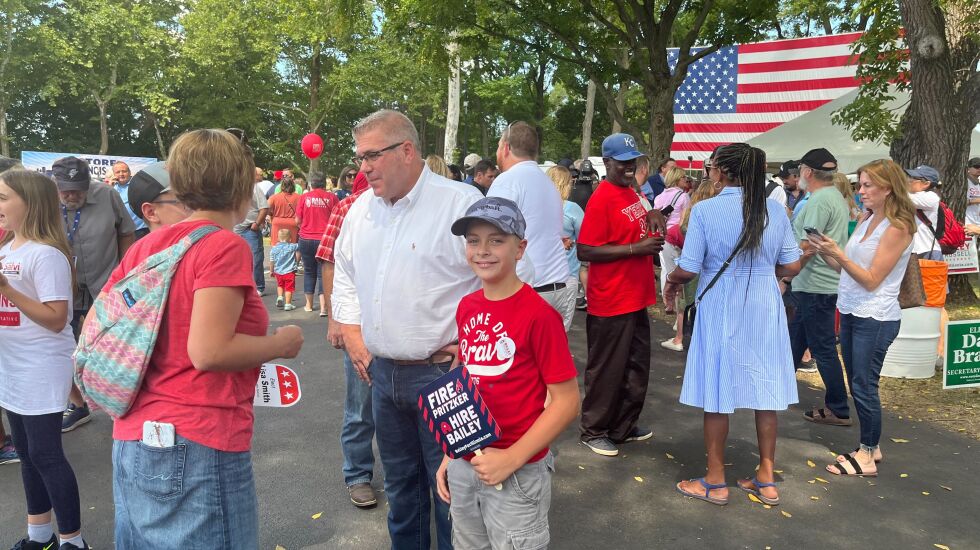 The state senator’s big hurrah on the fairgrounds came a day after Illinois Republican Party Chair Don Tracy hosted a unity event, with former GOP primary rivals Richard Irvin, Gary Rabine and Jesse Sullivan in attendance. Sullivan, a venture capitalist from downstate Petersburg, also came to Thursday’s State Fair events.