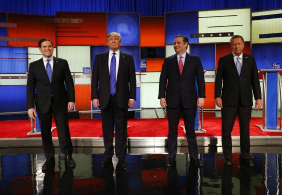 The debate in Michigan, which also featured Ohio Governor John Kasich, a man who sought to portray him a the “grown up” on a night of squabbling - at one point Mr Trump made a veiled claim about the size of his genitals - came after the tycoon had faced a barrage of attacks from Republicans opposed to him becoming the president.
