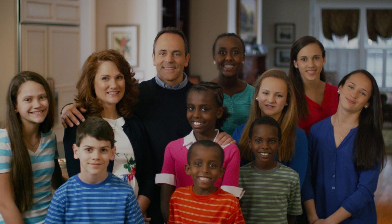 Mr Bevin, who will take office next month, has nine children, four of whom were adopted from Ethiopia. The cartoon immediately sparked criticism online from those who felt it was inappropriate.