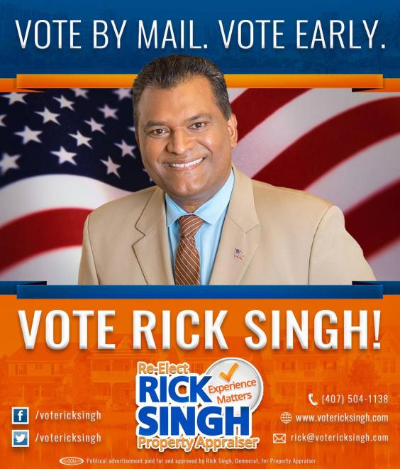 In the heated race for Orange County property appraiser, the Leadership for Florida’s Future political committee distributed mailers that liken the Democratic incumbent, Rick Singh, to the New York billionaire.
