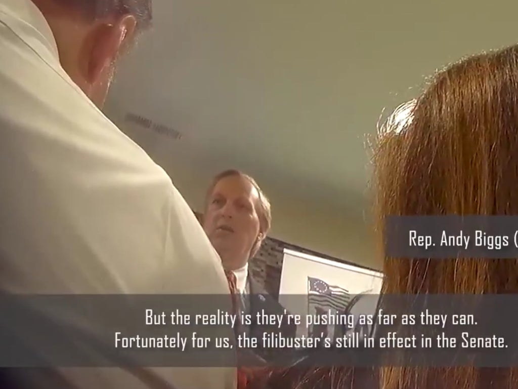 "Fortunately for us, the filibuster's still in effect in the Senate,” said Mr Biggs, in video tweeted by the Undercurrent’s Lauren Windsor on Twitter on Friday. “Without that we would be dead meat and this thing would be done.”