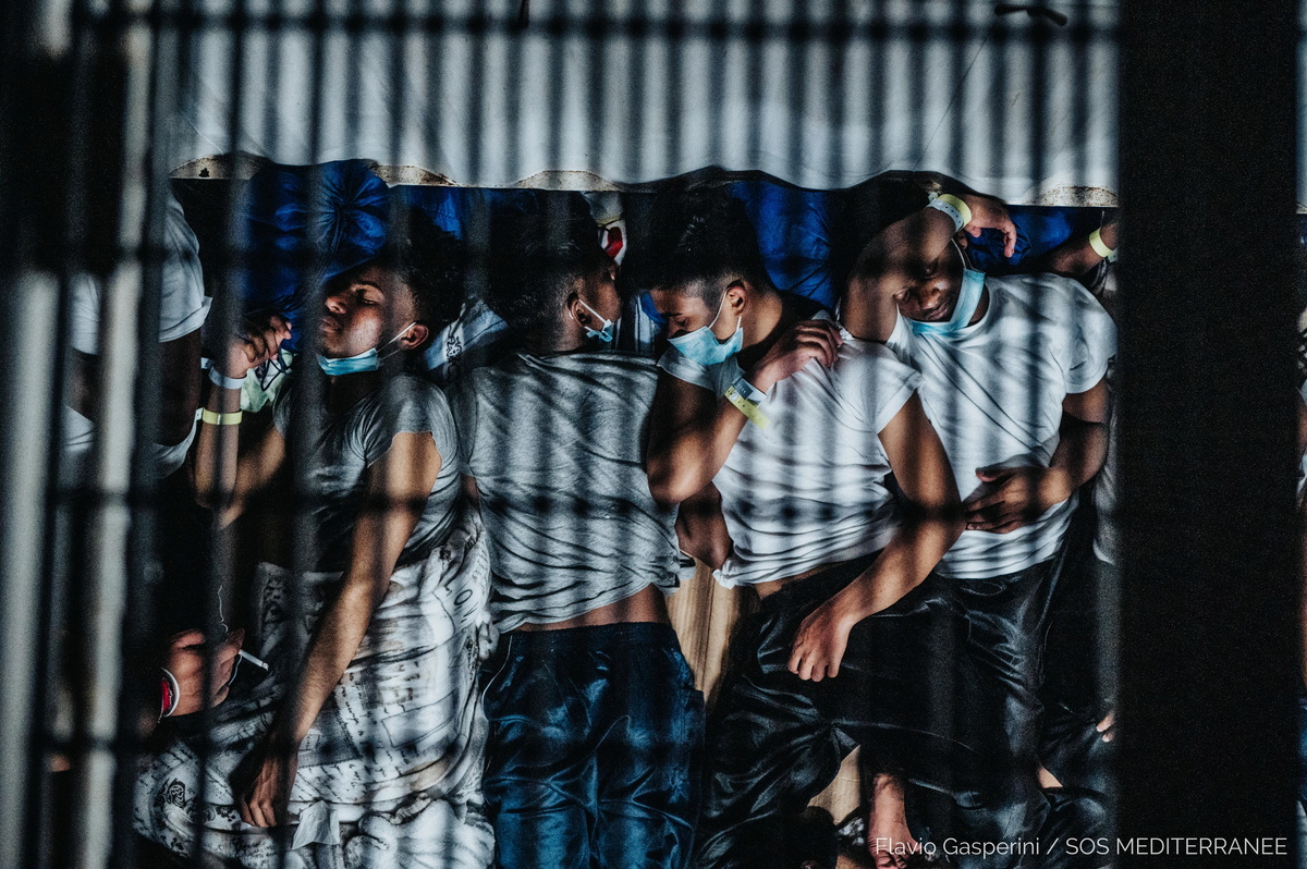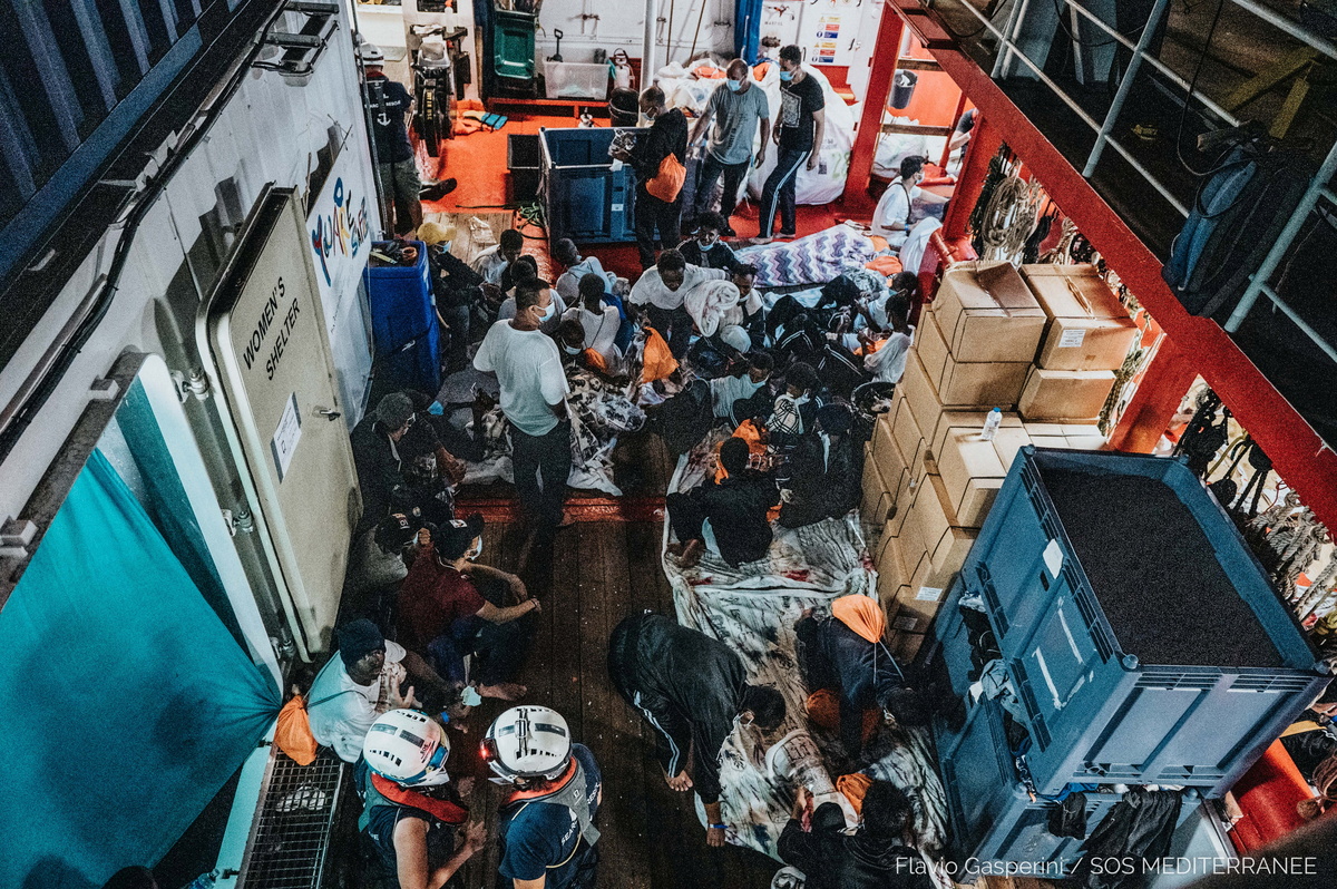 Migrants are rescued during a search and rescue (SAR) operation in the Mediterranean Sea, July 4, 2021. Picture taken July 4, 2021. Flavio Gasperini/SOS Mediterranee/Handout via REUTERS ATTENTION EDITORS - THIS IMAGE HAS BEEN SUPPLIED BY A THIRD PARTY. NO RESALES. NO ARCHIVES. MANDATORY CREDITMigrants rest aboard the Ocean Viking after being rescued during a search and rescue (SAR) operation in the Mediterranean Sea, July 5, 2021. Picture taken July 5, 2021. Flavio Gasperini/SOS Mediterranee/Handout via REUTERS ATTENTION EDITORS - THIS IMAGE HAS BEEN SUPPLIED BY A THIRD PARTY. NO RESALES. NO ARCHIVES. MANDATORY CREDIT