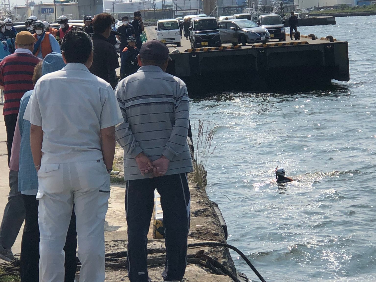 Per Natsuki’s photos, featured above, multiple fire trucks and emergency vehicles were present on site while at least one individual dove into the water to recover the “woman.” Multiple onlookers gathered to watch what they seemed to believe was a legitimate — or at least human — rescue mission, in awe.