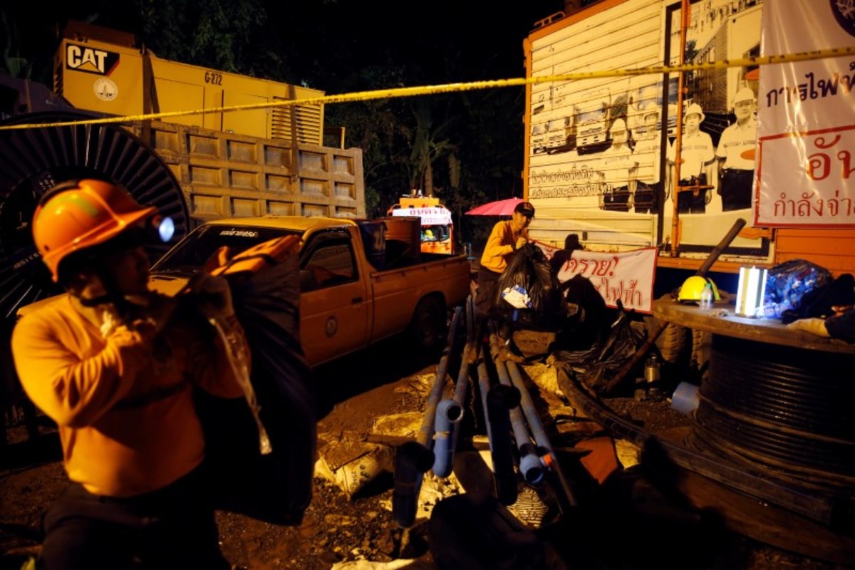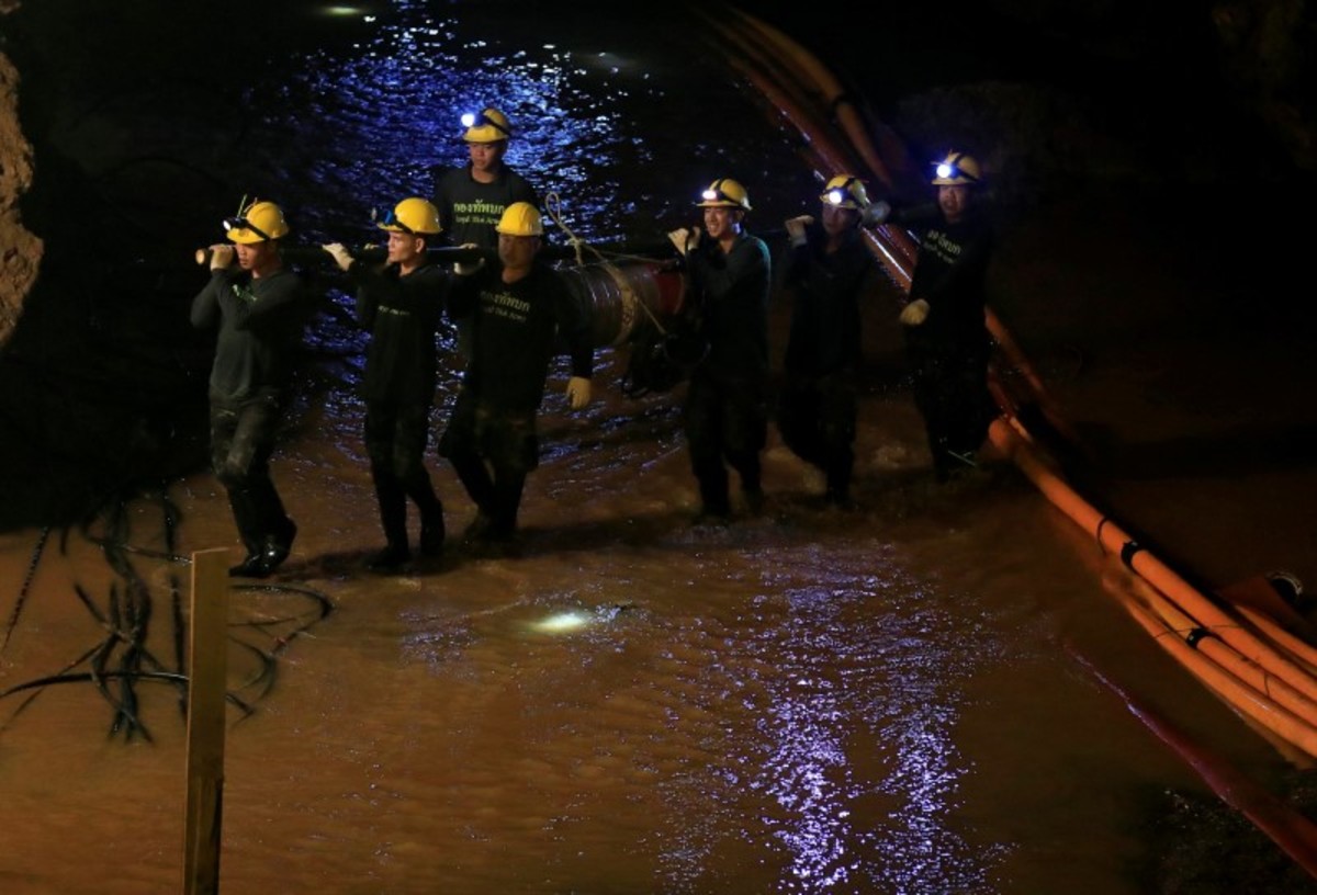 Rescue workers take out machines after 12 soccer players and their coach were rescued in Tham Luang cave complex in the northern province of Chiang Rai, Thailand, July 10, 2018. REUTERS/Soe Zeya Tun