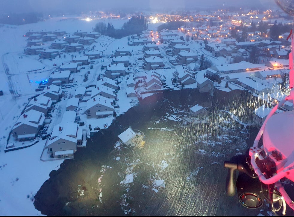 Helicopters and dogs were also deployed as the unstable clay soil made it unsafe for emergency workers to walk in the area in the Gjerdrum municipality about 30km north of Oslo.