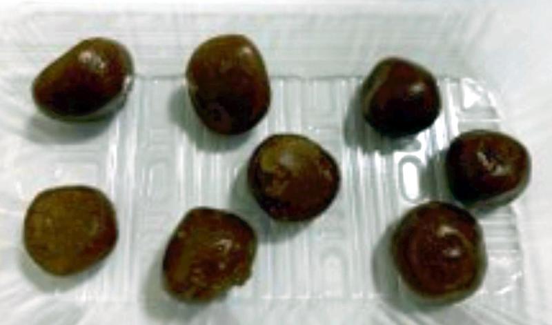 About 1 centimeter in diameter, 30 balls -- about 235 kilocalories in total -- were meant to have been enough for one day. However, they are so chewy that they deliver a feeling of fullness.