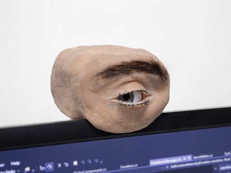 A designer has developed a webcam with synthetic flesh and a human eyeball that can blink, look around, and express emotions.