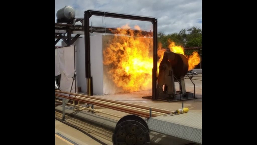 A gas-fired burner was used to simulate three bushfire phases — approaching fire, fire immersion, and post-fire.