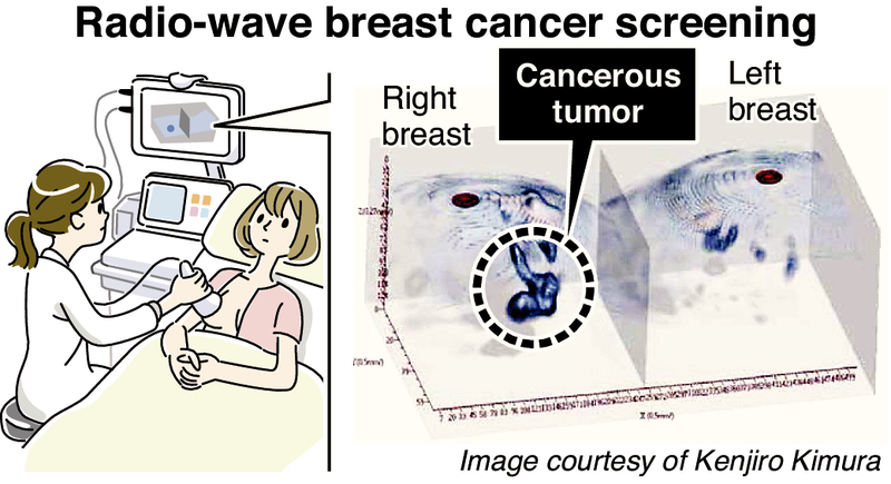 Kobe University Prof. Kenjiro Kimura, a specialist in metrology, and other researchers looked at the fact that breasts are mostly made of fat, with radio waves deflecting body tissue but penetrating fat.